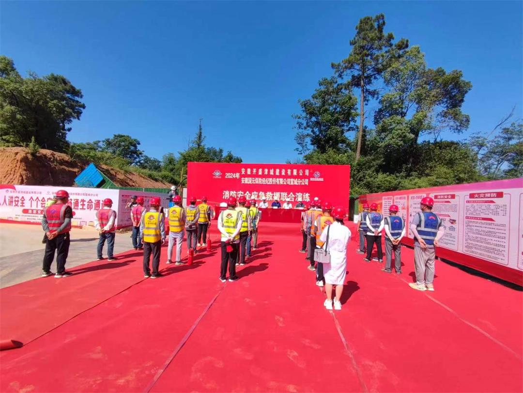 為切實加強項目現場安全生產教育,進一步提升項目施工人員“人人講安全,個個會應急,暢通生命通道”的安全意識與事故應急能力,創造良好的安全生產環境。2024年7月5日上午,安徽開盛津城建設有限公司聯合安徽國元保險經濟股份有限公司宣城分公司共同舉行“安全生產月”系列活動暨“暢通生命通道”消防安全應急救援疏散演練。開盛津城副總經理王金冰,國元保險宣城分公司副總經理李星燃出席活動。